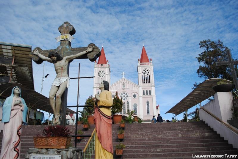 Baguio Cathedral is the biggest catholic church in the city and the center of religious activities such as during the Holy Week when thousands of devotees from Metro Manila and the provinces come up to the city. During Sundays and other special holidays of the catholic church, you will find some vendors along the stairway and also at the church's open patio selling flowers, balloons, newspapers, sweepstake tickets, candles, rosary beads, and other religious articles. Churchgoers and visitors that are desiring to visit Baguio on a tour should avoid coming up to the city during this religious week. Not only is the city crowded with people, it is difficult to find rooms in hotels and inns and the prices of native handicraft, souvenirs, vegetables, flowers, food, and other commodities & services are rather expensive.