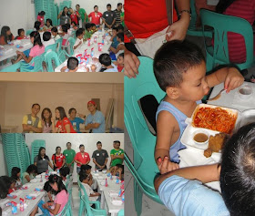 And then the program starts...........below are some of the pictures taken while our group is facilitating the activities, we had some games, face painting area, giving groceries and books for the kids, we also sang for the kids....hehehehe...(buti nalang hindi umulan....^_^) and of course eating session, thanks to jollibee.....^_^